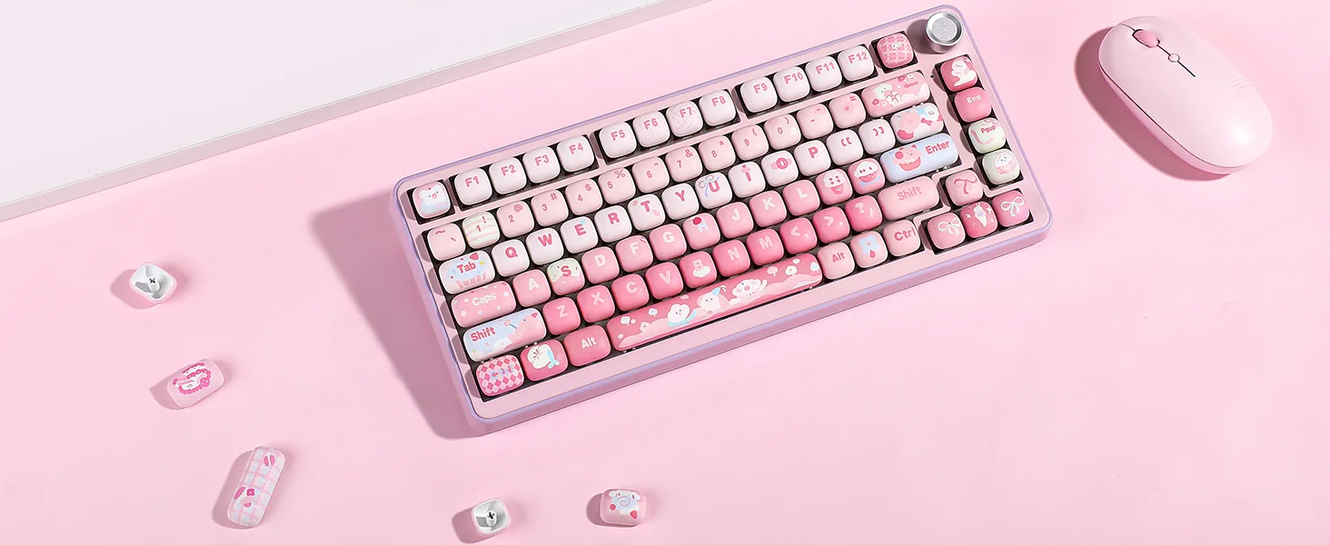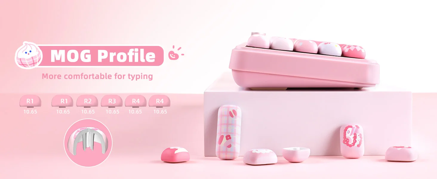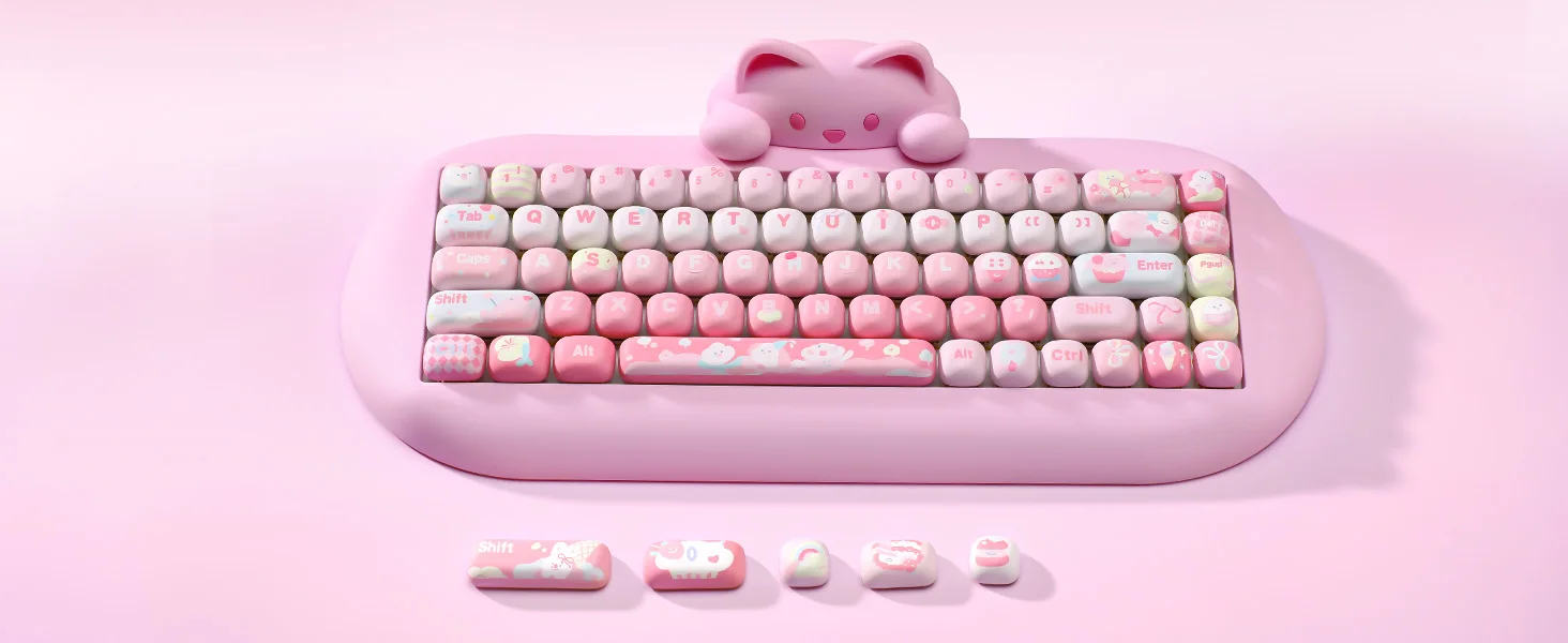 Sweet pastels, thick PBT texture, and long-lasting dye-sub legends. The YUNZII Pink Ice Cream set gives your mechanical keyboard a premium feel and a playful look. The MOG profile offers a comfortable sculpt for natural finger travel no shine, crisp sound and feel.